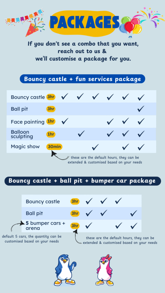 Enjoy greater savings and discounts with our party packages, available with various party rental items!