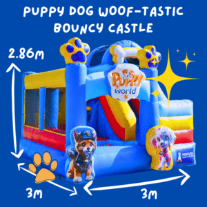Step into a world of puppy love and play with our Puppy World Woof-tastic Bouncy Castle! 🐶 Designed to spark joy and laughter, this inflatable wonderland is perfect for any event or party. Let the little ones bounce and explore in a whimsical setting filled with adorable puppy-themed details. Make your gathering unforgettable with our Puppy World Woof-tastic Bouncy Castle rental – where fun knows no bounds! 🐕